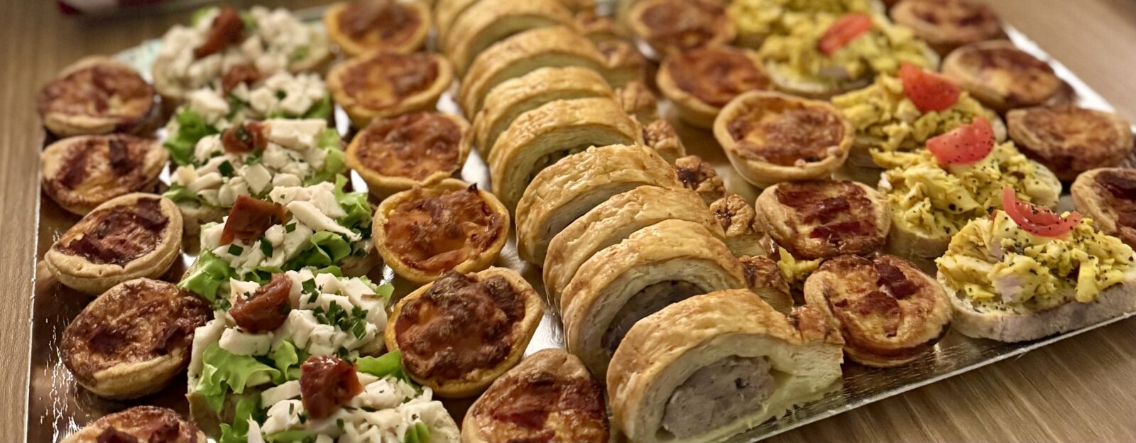 Fidèles à notre savoir-faire artisanal, nous élaborons des cocktails dinatoires, buffets, brunchs et réceptions à partir de pains artisanaux, viennoiseries pur beurre, petits-fours salés et sucrés, mignardises délicates, toasts raffinés, ainsi que de layer cakes et number cakes sur-mesure.